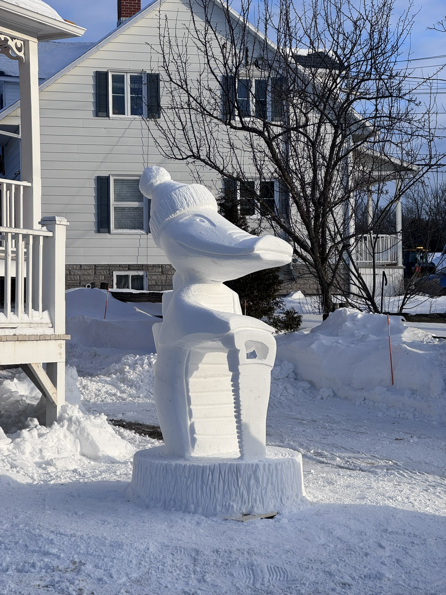 Au fil des ans, j’ai cumulé plusieurs présences en compétition à la Fête d’hiver de Saint‑Jean‑Port‑Joli. En 2011, mon équipe a également eu l’honneur d’agir comme représentants de la Fête d’hiver lors de l’événement de sculpture sur neige à Valloire, en France. À cela s’ajoutent des créations régulières dans le village, où nous réalisons des sculptures devant les commerces, tissant un lien vivant entre l’art, les lieux et la communauté.