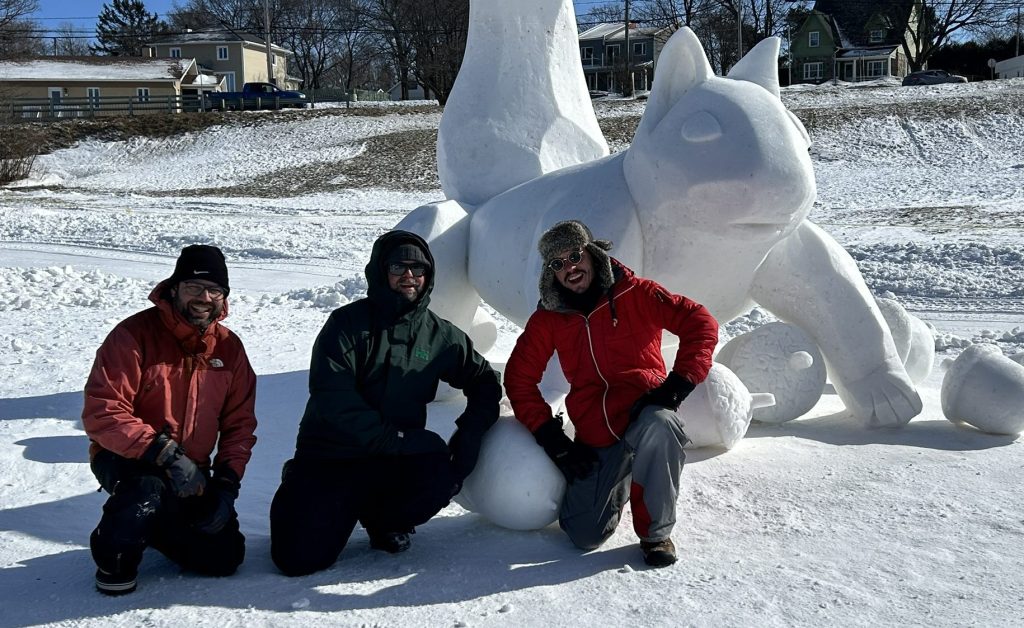 Depuis 1998, j’ai pris part à deux reprises au volet Relève du Carnaval de Québec. J’y ai animé une activité Découverte en 2009 en initiant des familles à la sculpture sur neige. En 2013, mon équipe a été choisie pour la sculpture promotionnelle. Plus récemment, en 2021 et 2022, nous avons réalisé trois sculptures dans le cadre de la Tournée des sculpteurs, contribuant à faire rayonner l’art éphémère dans différents site du Carnaval.