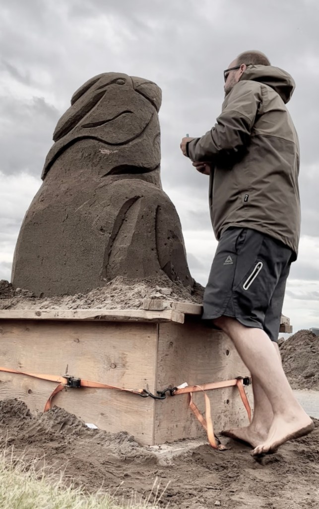 En 2022, j’ai eu le privilège d’être invité au volet relève de l’événement Sable et glace l’Islet et d’enfin vivre une première expérience de sculpture sur sable. Sous le thème du feu, le Phénix me semblait approprié pour débuter et apprivoiser cette matière.